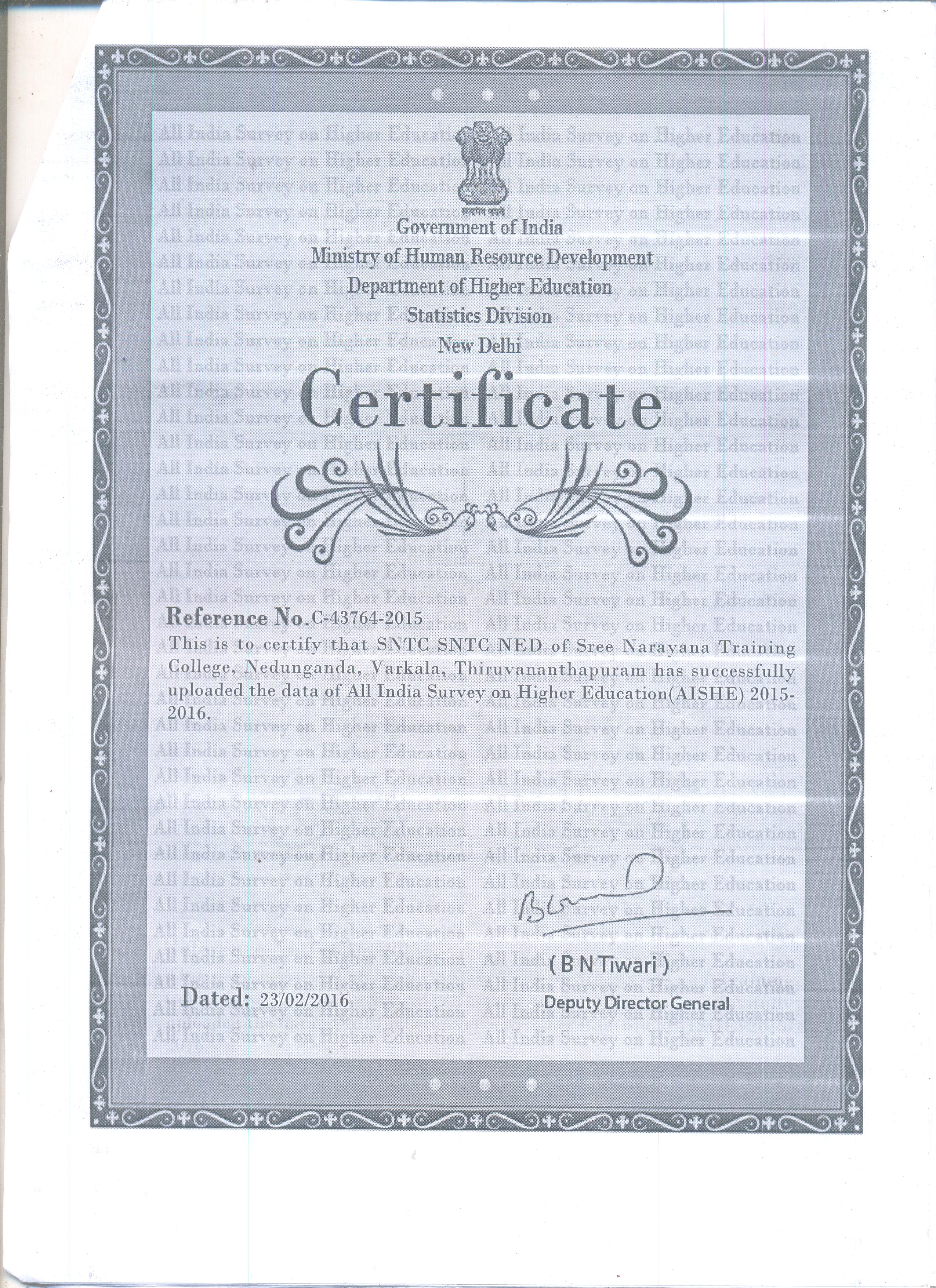 AISHE Certificate 2015-2016